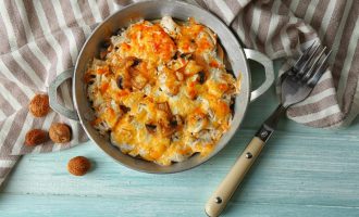 Piec w temperaturze 180 stopni przez około 45 minut, aż się zarumieni.