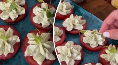 Przepis na bardzo smaczną przekąskę z pomidorów. Link skopiowany Szybka przystawka, która stanie się gwiazdą stołu / Kolaż: My, zdjęcie: zrzuty ekranu